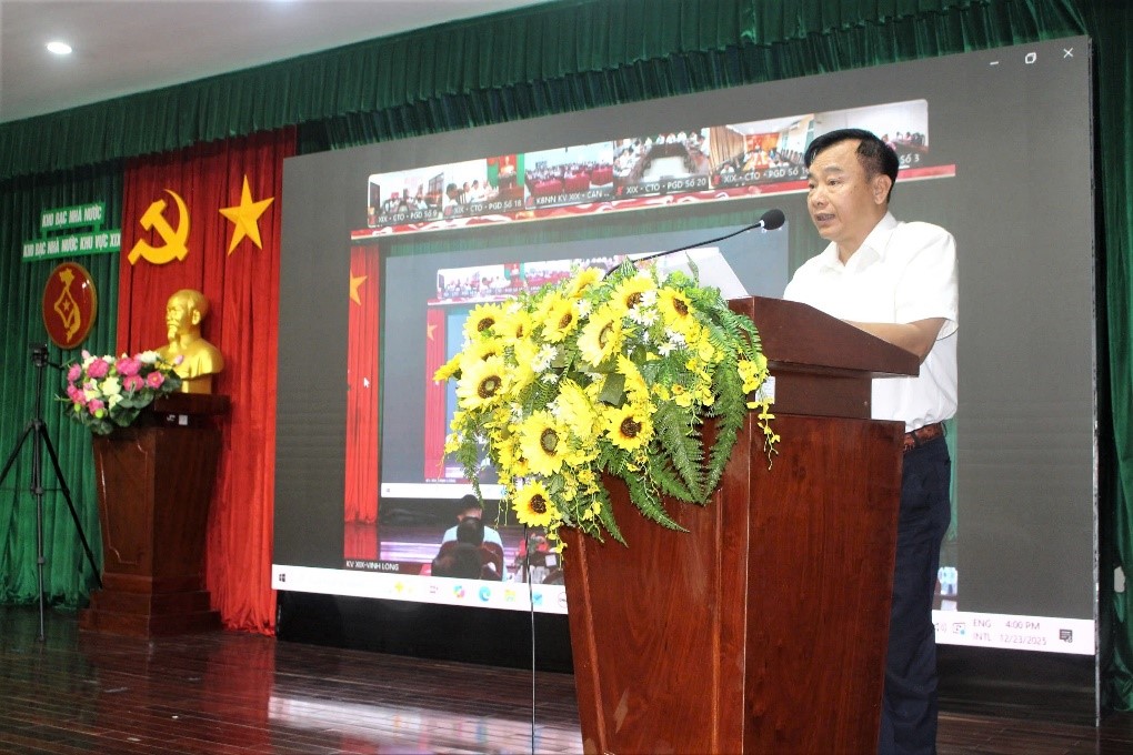 Ảnh: Đồng chí Nguyễn Ngọc Trí, Ủy viên Ban Thường vụ, Chủ nhiệm Ủy ban Kiểm tra Đảng ủy đã trình bày Báo cáo kiểm điểm sự lãnh đạo, chỉ đạo của Ban Chấp hành Đảng bộ và Báo cáo chuyên đề công tác kiểm tra, giám sát.