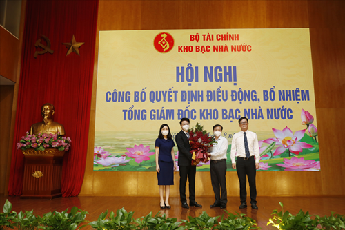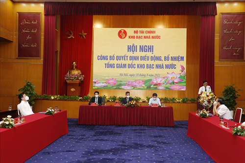 Tại Hội nghị, đại diện Lãnh đạo Vụ Tổ chức Cán bộ, Bộ Tài chính đã công bố Quyết định số 1515/QĐ-BTC của Bộ trưởng Bộ Tài chính về việc điều động, bổ nhiệm ông Trần Quân, Chánh Văn phòng Bộ Tài chính giữ chức vụ Tổng Giám đốc KBNN kể từ ngày 06/8/2021. Ông Trần Quân có quá trình công tác tại Ngân hàng Ngoại thương Việt Nam sau chuyển công tác sang Bộ Tài chính và giữ các chức vụ Phó Trưởng phòng thuộc Cục Tài chính doanh nghiệp; Giám đốc Ban quản lý Chương trình Hỗ trợ tư vấn và phân tích quản lý tài chính công tại Việt Nam; Trưởng phòng-Thư ký Bộ trưởng; Phó Chánh Văn phòng; Quyền Chánh Văn phòng; Chánh Văn phòng Bộ Tài chính. Ngoài các chức vụ nêu trên, ông Trần Quân còn giữ các chức vụ Chánh văn phòng Ban Cán sự Đảng Bộ Tài chính; Ủy viên Ban thường vụ Đảng ủy Bộ Tài chính; Trưởng Ban Tuyên giáo Đảng ủy Bộ Tài chính; Bí thư Đảng bộ bộ phận Văn phòng Bộ Tài chính.